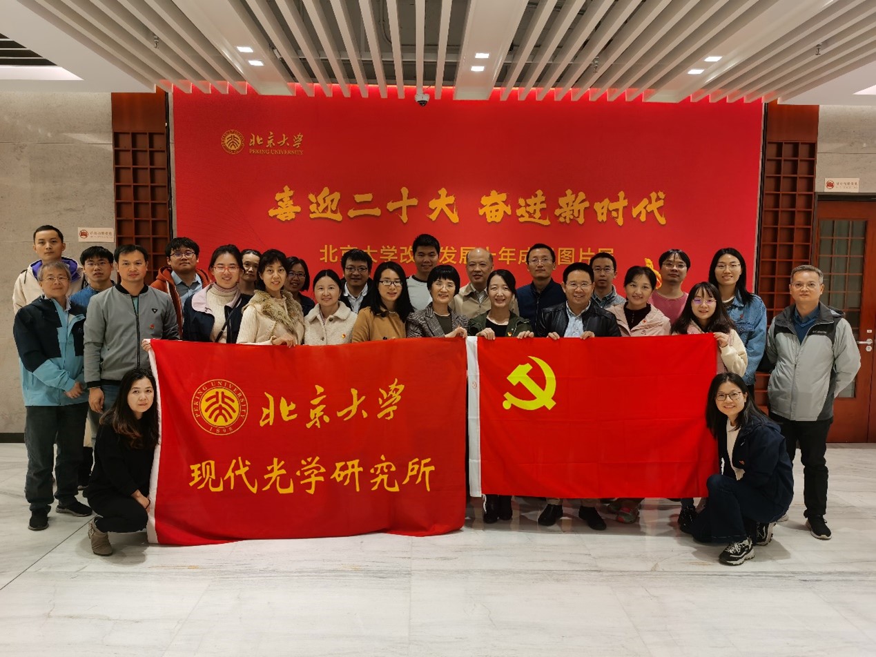 在喜迎党的二十大召开之际,2022年10月14日中午,物理学院现代光学研究所教工党支部组织开展支部主题党日活动。研究所党员、民主党派代表、群众代表等近30人一同前往校图书馆参观“喜迎二十大 奋进新时代——北京大学改革发展十年成果图片展”。