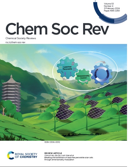 近期,相关研究结果受邀以“通过维度调控突破非铅钙钛矿太阳能电池的瓶颈”(Breaking the bottleneck of lead-free perovskite solar cells through dimensionality modulation)为题并作为封面文章发表于《英国皇家化学学会评论》(Chemical Society Reviews,2024,53,1769-1788).