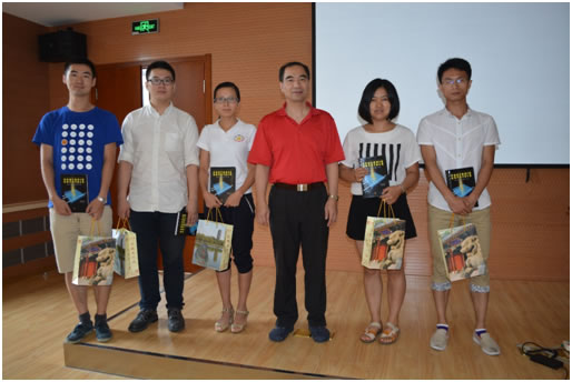(龚旗煌院士为参加“2015光学前沿博士生学术论坛”优秀报告获得者颁奖合影)